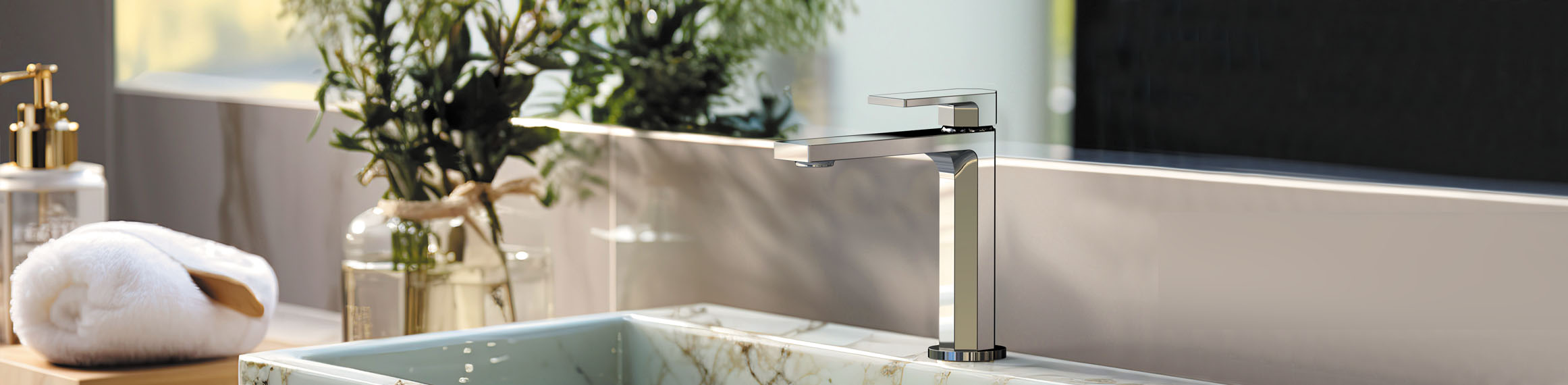 Nella collezione ACADEMY, le otto sfaccettature del corpo si fondono elegantemente con la maniglia a leva, ribassata e senza tagli posteriori, creando un’architettura di design scultoreo. Il tutto e’ impreziosito dai naturali riflessi e prospettive.