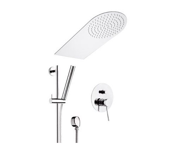 Art. 350UFM: Soffione doccia ultrapiatto 50x25 cm, a parete in acciaio INOX lucidato a specchio, getto a pioggia;