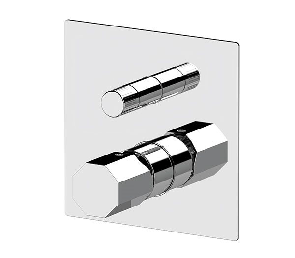 Miscelatore a incasso per vasca/doccia con deviatore a 2 vie a vitone ceramico, su piastra quadra. Per selezionare l’uscita desiderata, la manopola del deviatore deve essere ruotata da una posizione all’altra.