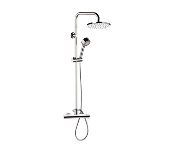**FUORI CATALOGO (ancora acquistabile)** COLONNA DOCCIA con miscelatore doccia con attacco superiore da 3/4”, colonna doccia in ottone con attacco basculante, doccetta in ABS a 4 funzioni con getti anticalcare, con flessibile 150 cm e soffione a pioggia, in ABS cromato Ø 20 cm, con getti in silicone anticalcare.
