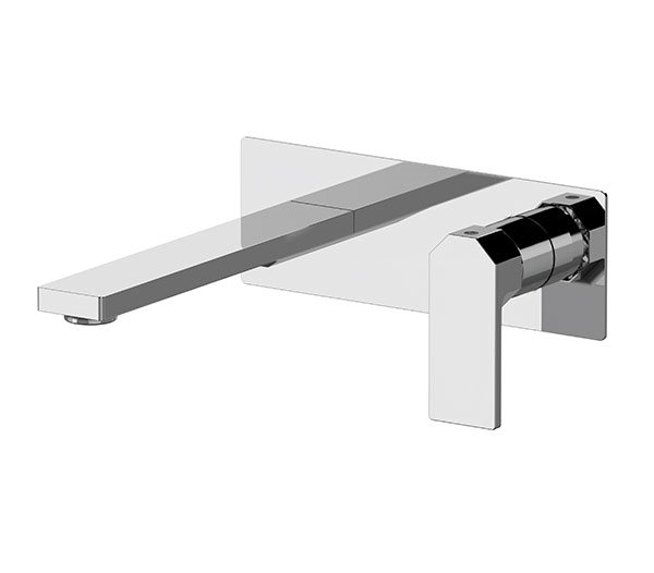 Miscelatore monocomando a incasso per lavabo. Piastra ultra-piatta. Lunghezza bocca 18,5 cm.