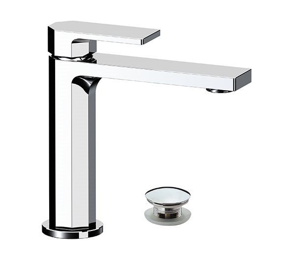 Miscelatore monocomando lavabo, con scarico click-clack e troppopieno.