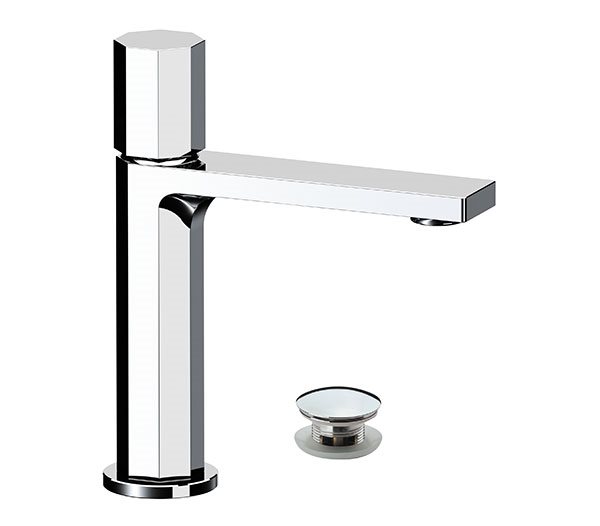 Miscelatore monocomando lavabo, con scarico click-clack e troppopieno.