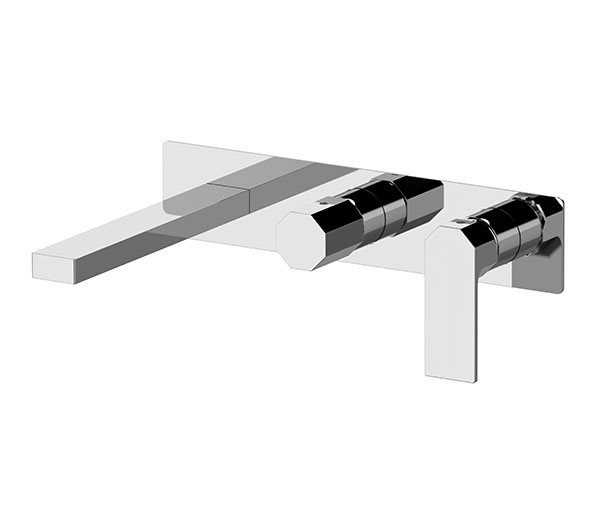 Set miscelatore a incasso a 2 vie per vasca/doccia su piastra unica rettangolare ultra-piatta, include miscelatore monocomando, deviatore a 2 uscite, bocca a muro. Da completare con la seconda uscita.