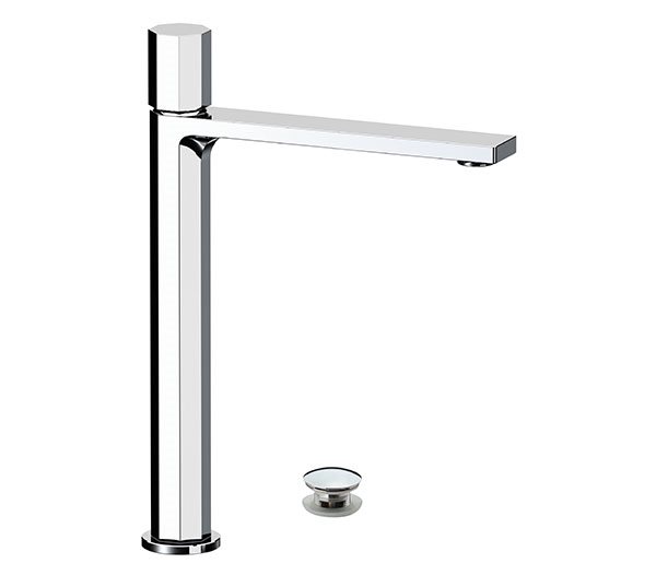 Miscelatore monocomando alto per lavabo con scarico click-clack e troppo pieno.