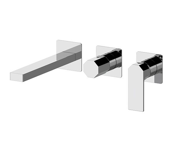 Set miscelatore a incasso a 3 vie per vasca/doccia su 3 piastre tonde ultra-piatte (piastre separate e incasso unico), include: miscelatore monocomando, deviatore a 3 uscite, bocca a muro. Da completare con la seconda e la terza uscita acqua.