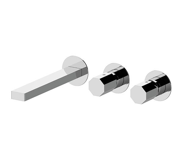 Set miscelatore a incasso a 3 vie per vasca/doccia su 3 piastre tonde ultra-piatte (piastre separate e incasso unico), include: miscelatore monocomando, deviatore a 3 uscite, bocca a muro. Da completare con la seconda e la terza uscita acqua.
